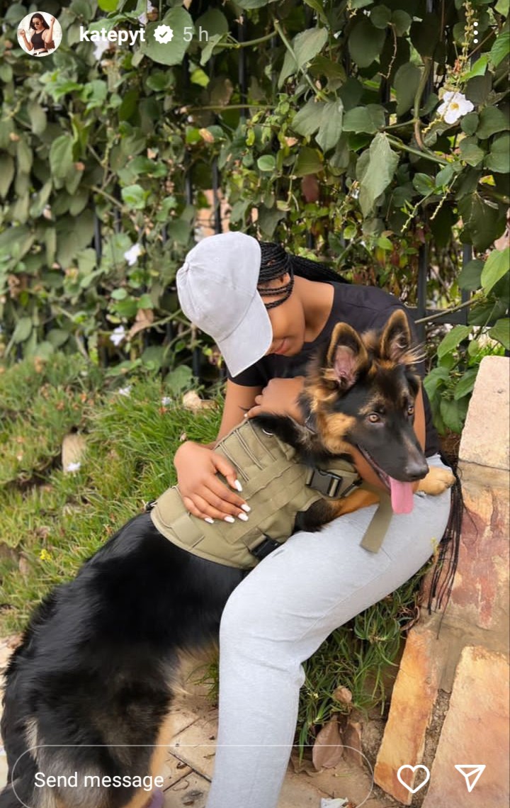 Nyuma y’umutsi umwe gusa umunyamideri Kate Bashabe agaragaye yikoreye agataro, kuri iki cyumweru yongeye kugaragara ari gukina n’imbwa ye.
