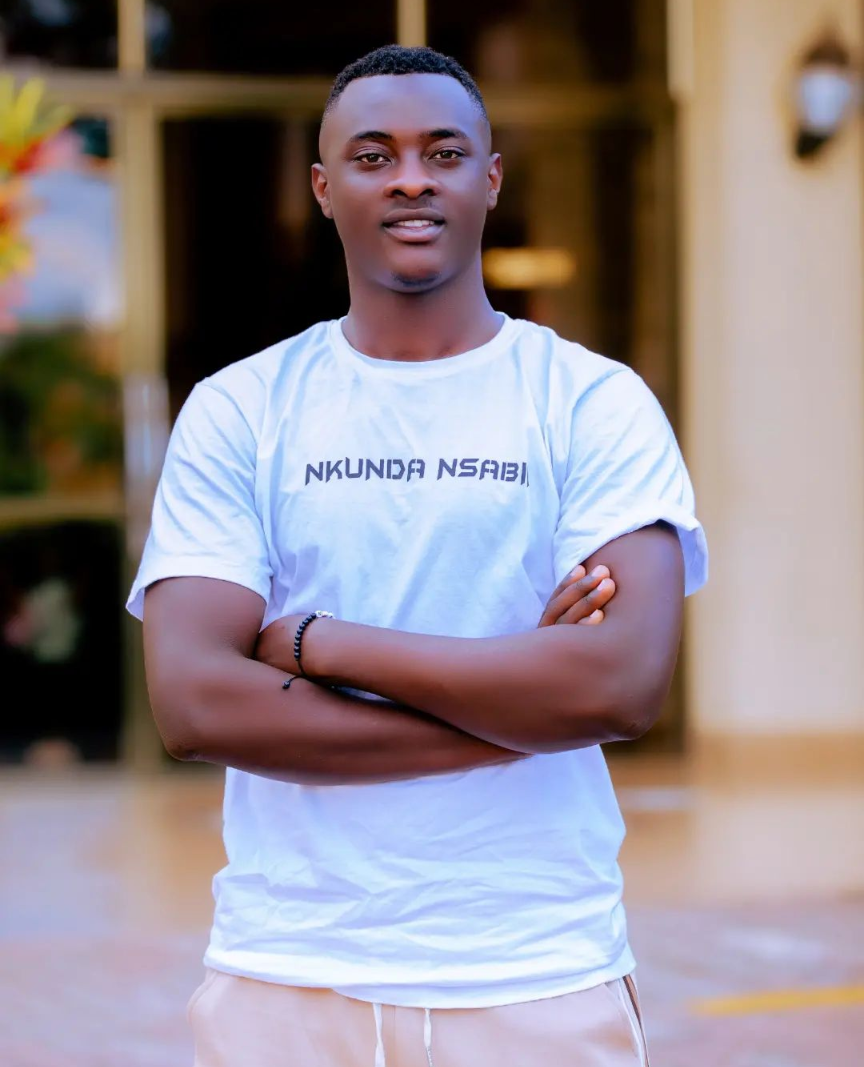 Umunyarwenya Dogiteri Nsabi yagaragaye yambaye imyambaro yanditseho amagambo ashishikariza abantu kumukunda.