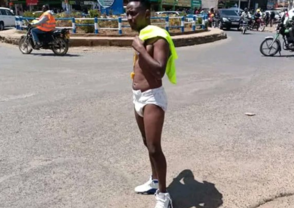 Nubwo benshi bari bazi ko yabivuze yikinira,uyu mugabo yahise akuramo imyenda yose yambara pampers arangije afata ifirimbi agenda arivuza muri uyu mujyi wa gatanu mu bunini muri Kenya,uherereye mu birometero 400 uvuye I Nairobi.