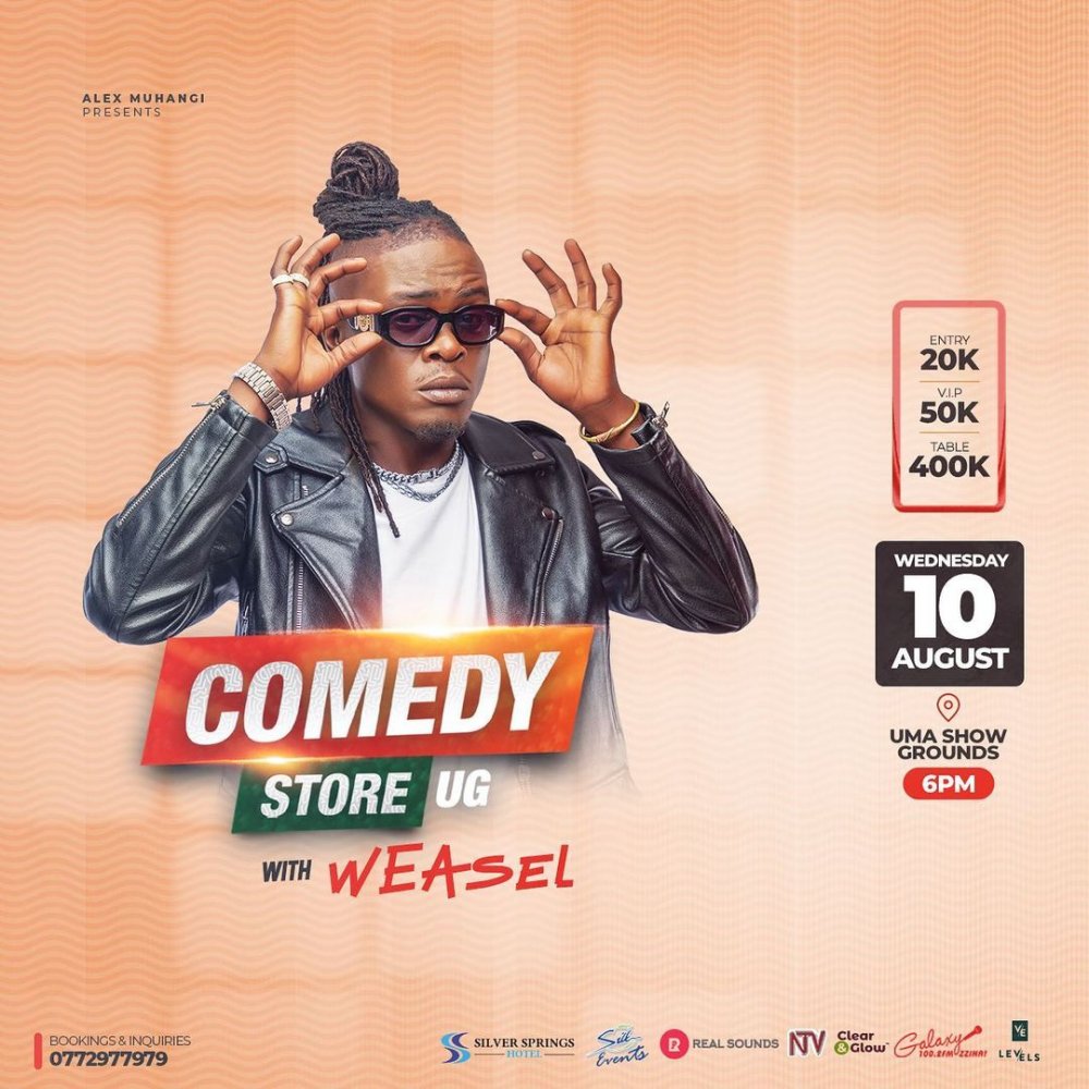 Alex Muhangi wamenyekanye mu gutegura ibitaramo bihuza abahanzi n’abanyarwenya kuri iyi nshuro yatumiye Weasel mu kizaba ku wa 10 Kanama 2022.