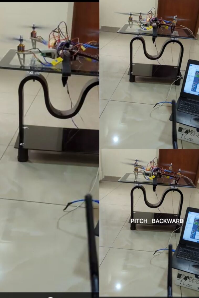 Yaranditse ati”Drone ubu yarangiye( akamenyetso ko gukoma amashyi n’ ak’umuriro) ! Aho narindimo ndakora test za macommand nzajya nohereze kugira ngo mbashe kuyiyobora neza mugihe iri kuguruka. Igisigaye nugushyiraho battery ahasigaye ikaguruka”.