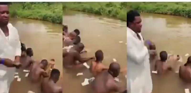 Umupasiteri ukomoka muri Anambra muri Nigeria, Onyeze Jesus akomeje kuvugisha abatari bake nyuma  y’ubwo agaragaye muri videwo akora umuhango wo kubatiza abayoboke be batonze umurongo bambaye ubusa mu ruzi.
