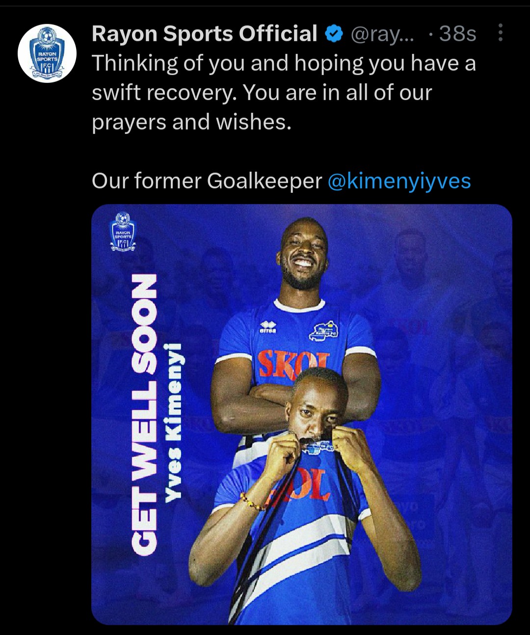 Umupira si intambara! Ubutumwa bwa Rayon Sports ku muzamu Kimenyi Yves wavunitse , bwuje ubugwaneza n’urukundo.
