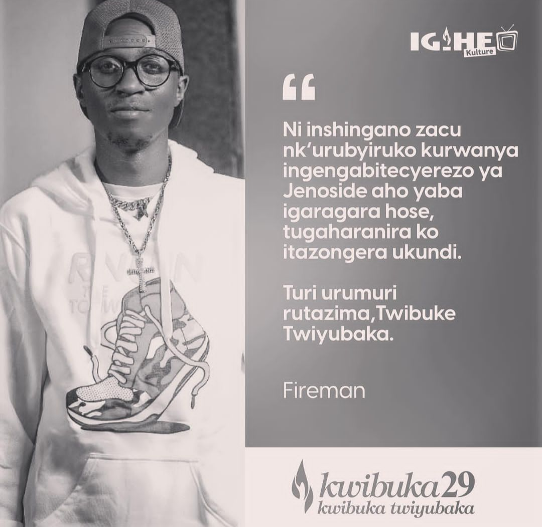 Umuraperi Uwimana Francis wamamaye nka Fireman yibukije urubyiruko ko ari inshingano za buri wese kurwanya ingengabitekerezo ya Jenoside yakorewe Abatutsi mu 1994.