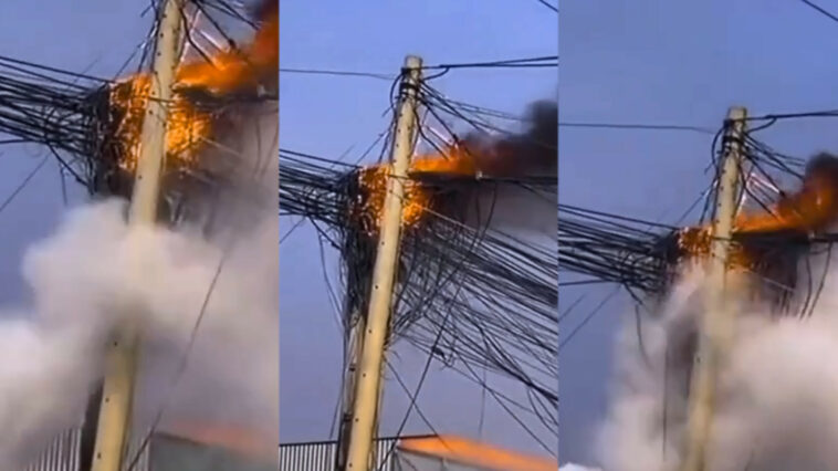 Mu gace kamwe ko mu gihugu cy’abaturanyi habaye inkongi y’umuriro yibasiye ipoto r’amashanyarazi ajya mu baturajye.