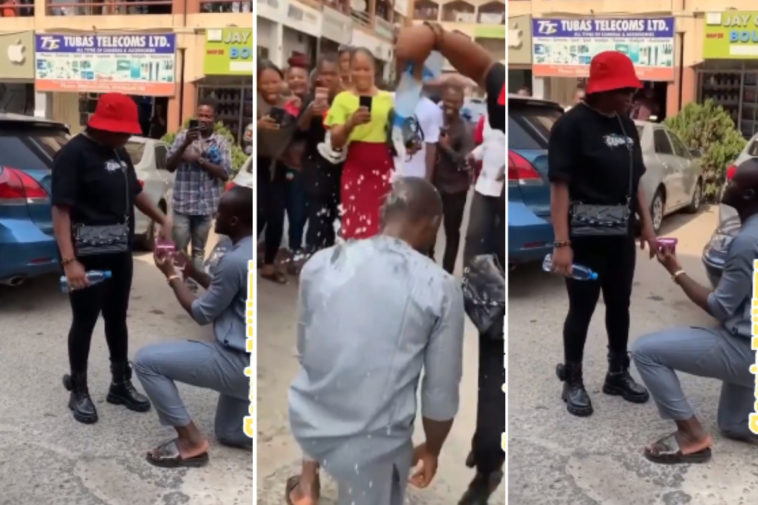 Umusore wo muri Nigeria yashenguwe n’agahinda nyuma yo gushaka kwambika impeta umukobwa yarihiye amashuri bikarangira amumennyeho amazi imbere y’abantu.