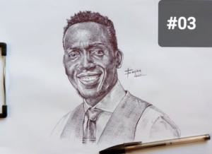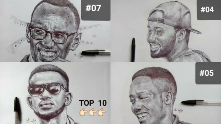 Umusore ufite impano idasanzwe, yashushanyije ibyamamare 10 akunda harimo na Nyakubahwa Pres. Paul Kagame – AMAFOTO