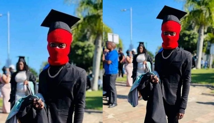 Umusore urangije kaminuza yafotowe yambaye masike mu munsi wa graduation atinya ikintu gikomeye
