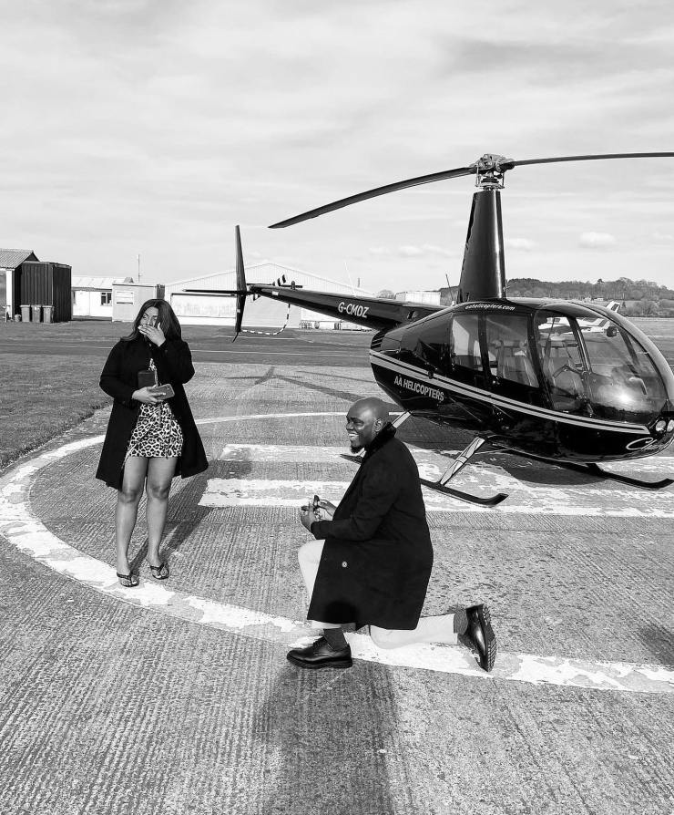 Umugabo yamujyanye muri kajugujugu kugirango abone ibintu byiza yakwishimira aramutse yemeye kuba umugore we.Edward yasangiye amafoto amwe n’amwe yafotowe ubwo yambikaga impeta uyu mukunzi we , kajugujugu yagaragaye iruhande rwabo. Yavuze ko yamutwaye hejuru ya metero 1.500 hejuru yinyanja barya ubuzima.