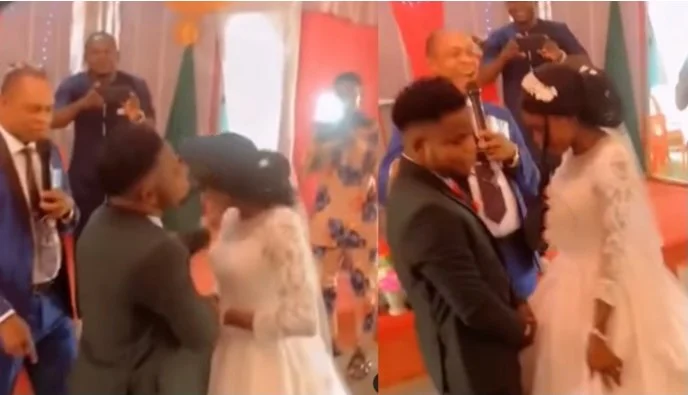 Umusore wari ugiye kurongora yagaragaye akubita urushyi rukomeye umugeni mu rusengero, abantu bibaza icyabimuteye.