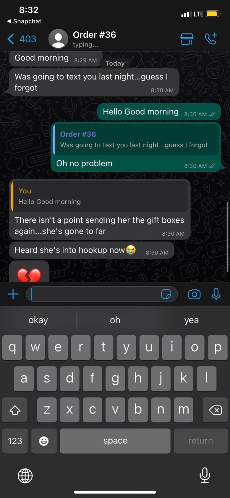 Mu kiganiro, yabwiye umucuruzi kudahangayikishwa no koherereza umukobwa we agasanduku k’impano yari yamugeneye kuko yavumbuye ko amuca inyuma ku bandi bagabo kandi ko bamwishyura.