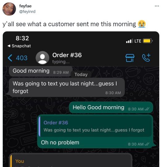 Uyu mugabo yasangiye amafoto y’ubutumwa umukiriya we yamwoherereje akoresheje WhatsApp ahagarika komamde yari yatanze.