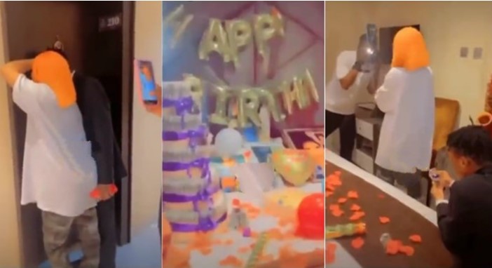 Muri videwo yasangiwe kuri Twitter uyu musore yari yateguye ibirori by’uyu mukobwa maze ubwo bamaraga kumuha impano zo ku isabukuru ye y’amavuko, umusore yahise ashinga ivi amusaba ko bazashyingiranywa.