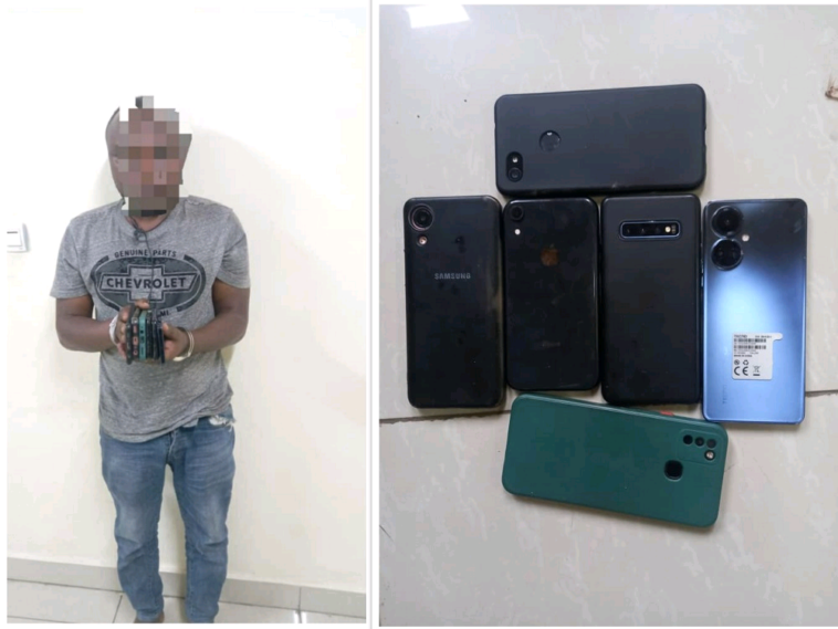 Ubwo abapolisi bamufataga bamusanganye telefoni esheshatu zigezweho, Samsung galaxy S10, Samsung galaxy 03 Core, iPhone XR, Infinix smart 6, Google Pixel 3A na Tecno Camon 19 adafitiye ibyangombwa ahita atabwa muri yombi.”