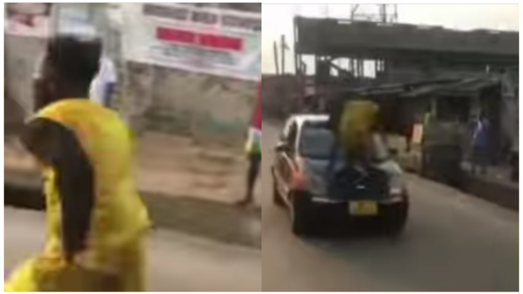 Uyu musore yagaragaye mu mashusho asimbuka imodoka yazaga imusanga na we agenda ku muvuduko ho hejuru ,maze ubwo yamaraga kuyisimbuka yahise yitura mu muhanda yubitse inda bigaragara ko yanababaye cyane.
