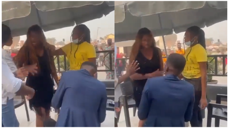 Umusore w’umusirimu yakubiswe n’umukobwa yashakaga kwambika impeta aramwandagaza bose babireba(Video)