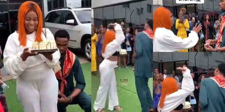 Umusore yahuriye n’uruva gusenya ku rusengero ubwo umukobwa bakundana yizihizaga isabukuru y’amavuko  undi ngo agahitamo no guhita atera ivi agasaba uyu mukobwa kumubera umugore imbere y’inshuti zabo ariko aho kugirango ahabwe yego agakubitwa inshyi na Cake mu maso.
