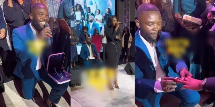 Uyu musore, usanzwe ukundana n’umukobwa w’umuramyi mu rusengero ,ubwo uyu mukobwa yarimo aramisha mu rusengero yamugiye inyuma apfukamisha ivi rimwe afite box yarimo impeta zigera kuri 7 asaba umukobwa ku mubera umugore , undi abyemera ntakuzuyaza.