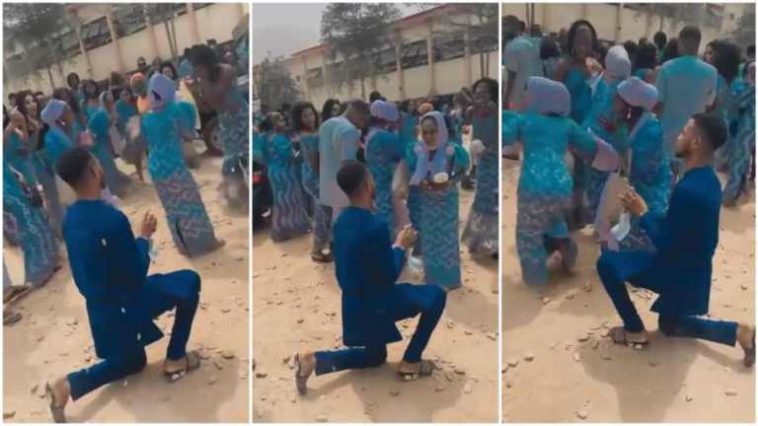 Umusore yatumuriweho ivumbi n’abagore babyinaga ubwo yari yashinze ivi ku butaka ategereje ko umukunzi we aza akambwika impeta.
