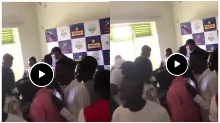 Umutoza w’ikipe ya APR FC Adil Mohammed yahuye n’uruvagusenya ubwo yinjiraga ahagomba kubera ikiganiro n’itangazamakuru bikarangira bamusabye kwisohokera.Nk’uko bigaragara mu mashusho dukesha TV10 uyu mutoza w’ikipe y’Ingabo z’Igihugu yasabwe n’abanyamakuru gusohoka igitaraganya adatanze ikiganiro.Mu majwi menshi y’abanyamakuru basubiragamo mu Gifaransa bavuga ngo ”sortez” bamusaba gusohoka.