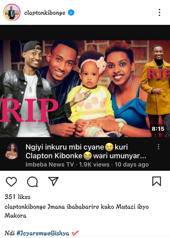 Kibonke Clapton abinyujije ku mbuga nkoranyambaga ze yasangije ifoto igaragaza iyi nkuru ivuga ko yitabye Imana, ndetse ayiherekesha amagambo agira ati “Imana ibabarire kuko mutazi ibyo mukora” , ati” ndi icyaremwe gishya!”.