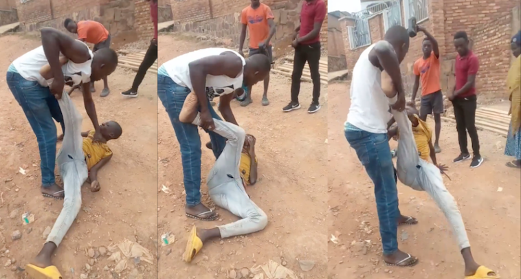 Amashusho yagaragaye kuri Twitter , umugabo yashyize hasi umwana w’umuhungu bivugwa ko ari umwe mu bana bo ku muhanda.