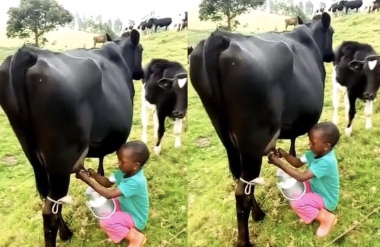 Umwana w’imyaka 6 yagaragaye arimo gukama inka mu Bigogwe (video)