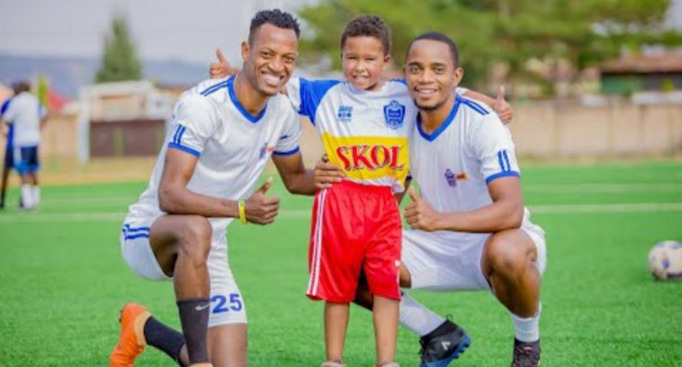 Umwana ukomoka muri Amerika ukunda ikipe ya Rayon Sports yaje mu mwitozo yayo ahura n’abakinnyi b’iyi kipe ubona ko yishimiye kuba ari kumwe n’abakinnyi ba Rayon Sports.
