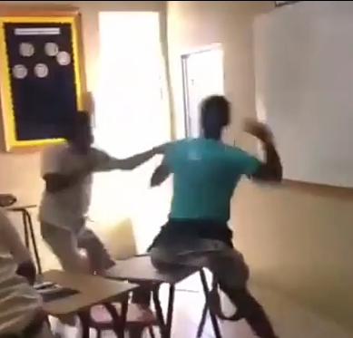 Umwarimu n’umunyeshuri barwaniye mu ishuri bakubitana ingumi z’imiriro rubura gica (Videwo)