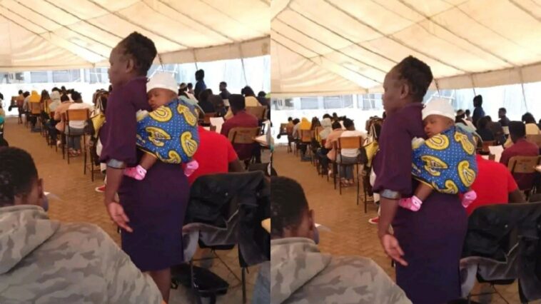 Umwarimu witwa Ruth wa Kaminuza yabaye kimenyabose nyuma yo kugaragara ahetse umwana w’umunyeshuri yari ari gukoresha ikizamini