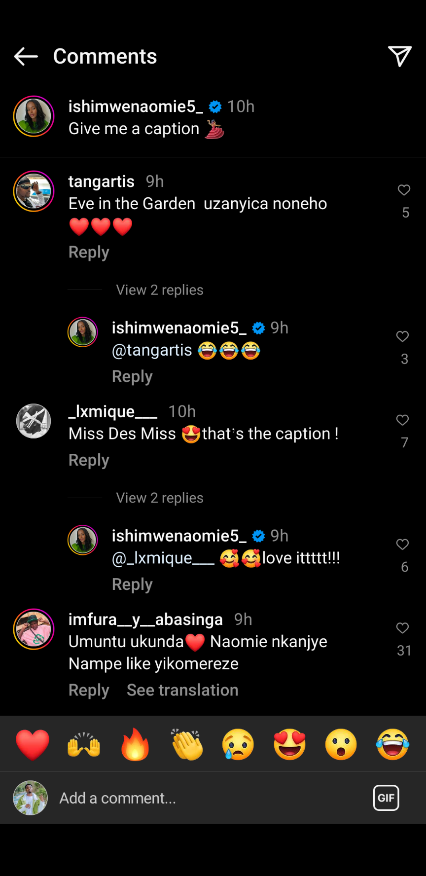 Miss Ishimwe Naomi wabaye Nyampinga w’u Rwanda wa 2020 uzwiho kugira uburanga burangaza abarebyi yifashishije imbuga nkoranyambaga ze yasangije abakunzi be ifoto ye nziza cyane igaragagaza uburanga bwe burangaza benshi maze asaba abantu kugira icyo bavuga kuri iyi foto maze nabo bavuga batizigamye.
