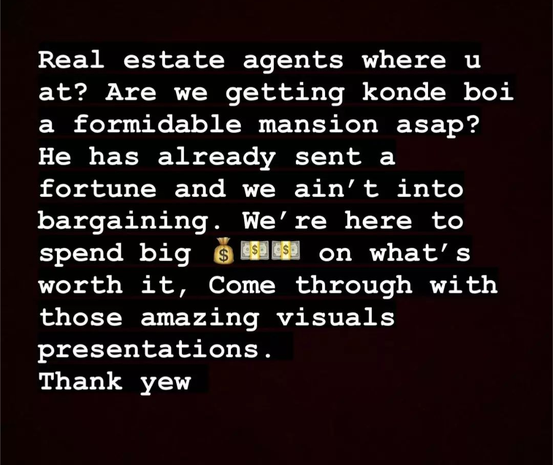 Yolo The Queen abinyujije ku rukuta rwe rwa Instagram yemeje ko yakiriye amafaranga yo kugurira inzu Harmonize mu Rwanda.