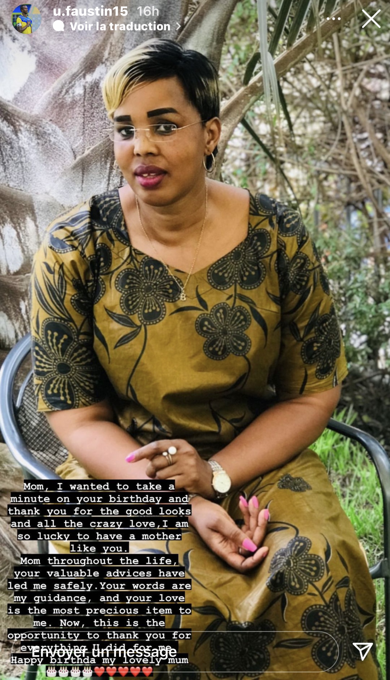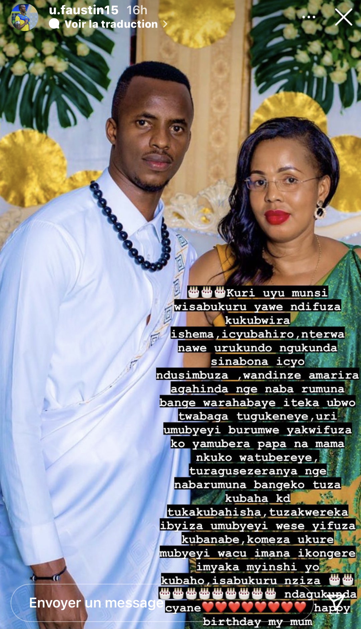Faustin Usengimana, Myugariro w’ikipe ya Police FC, yifurije isabukuru nziza Mama we. Abinyujije kuri story ya instagram ye, Faustin Usengimana yashyize hanze amafoto ya Mama we maze ayaherekesha amagambo yo gushimangira urukundo amukunda ndetse anamwifuriza isabukuru nziza y’amavuko.