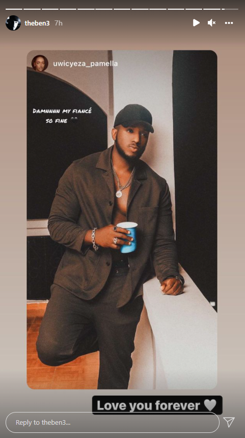 Ku munsi wejo, Umuhanzi The Ben yashyize ifoto ye nshyashya kuri Instagram maze umukunzi we ayishyira kuri Instagram story yandikaho amagambo amubwirako asa neza ati “Damnn My Fiance, So fine” nyuma yaho The Ben nawe amusubiza ko amukunda ibihe byose ati “Love you Forever”