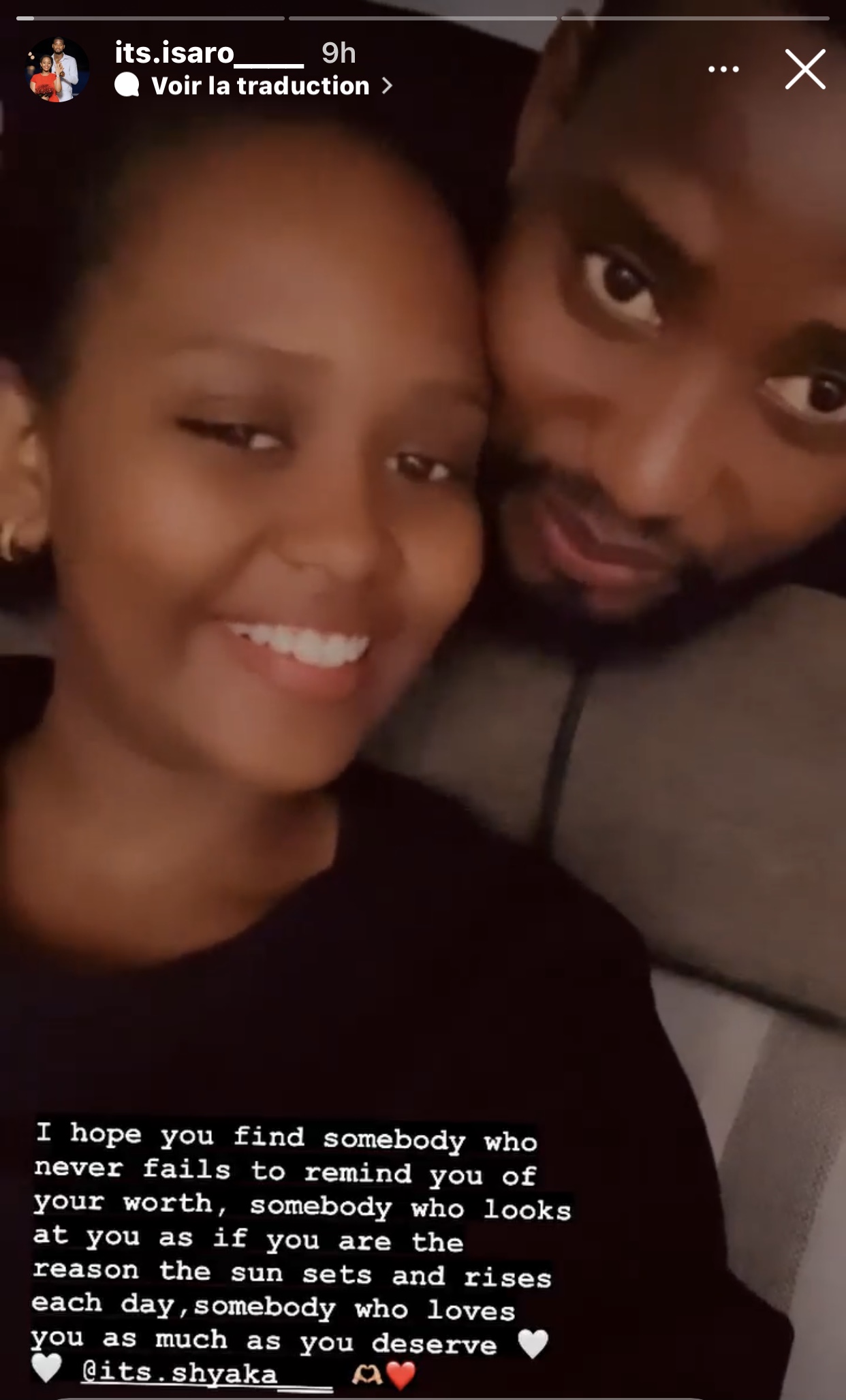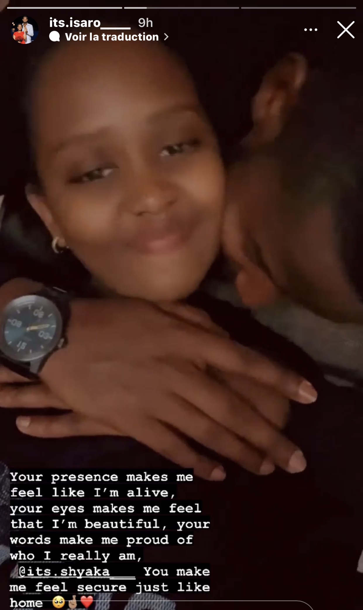 Isaro Amanda abinyujije kuri story ya instagram ye yashyize hanze amwe mu mashusho ari kumwe na Olivier agaragaza ibihe byiza bari barimo kugirana maze ayaherekesha amagambo ashimangira urukundo amukunda.