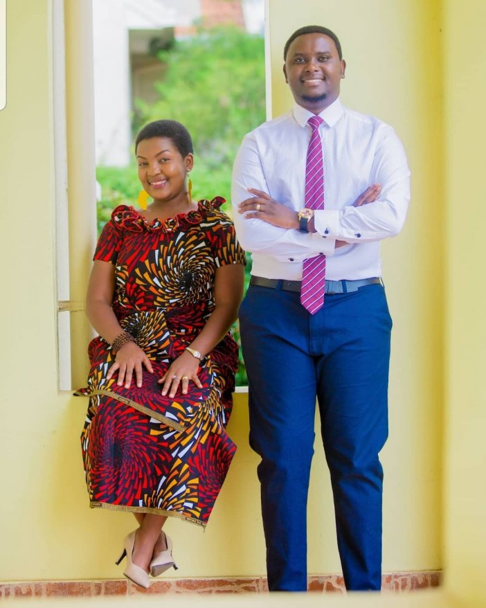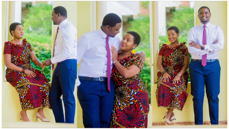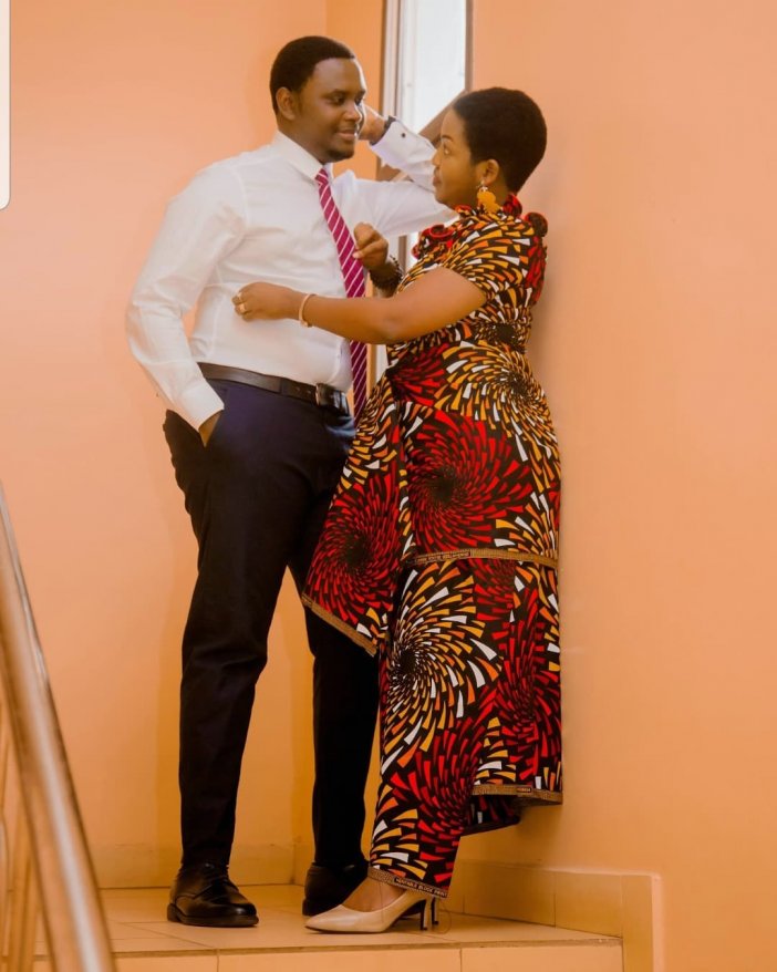 Aya mafoto ya Clarisse Karasira n’umugabo we, umwe aba yambaye imyambaro y’umugore w’Umunyafurika y’igitenge n’ishati yacyo mu gihe umugabo yambaye ipantalo nziza n’ishati yanigirije na Cravatte.