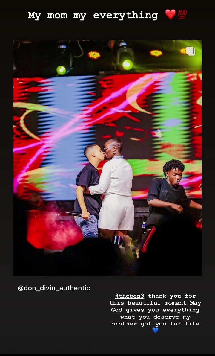 Abinyujije ku rukuta rwe rwa Instagram, Babo yashimiye Mama we ndetse na The Ben. Yagize ati “Mama wanjye, buri byose byanze.”