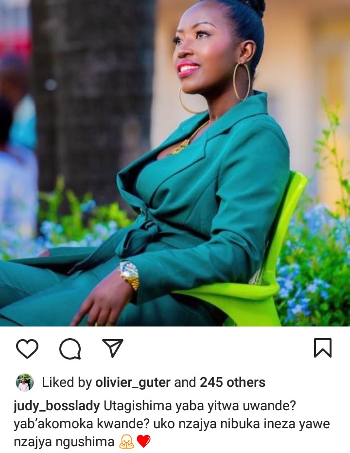 Abinyujije ku rukuta rwe rwa Instagram, Judithe yagiye ati “Utagishima yaba yitwa uwande? yab’akomoka kwande? uko nzajya nibuka ineza yawe nzajya ngushima.”