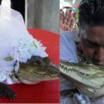 Bayambitse agatimba nk’umugeni! Umugabo yashyingiranywe n’ingona bigona nyuma yo kumuhata ibintu n’urukundo bikamurenga (AMAFOTO)