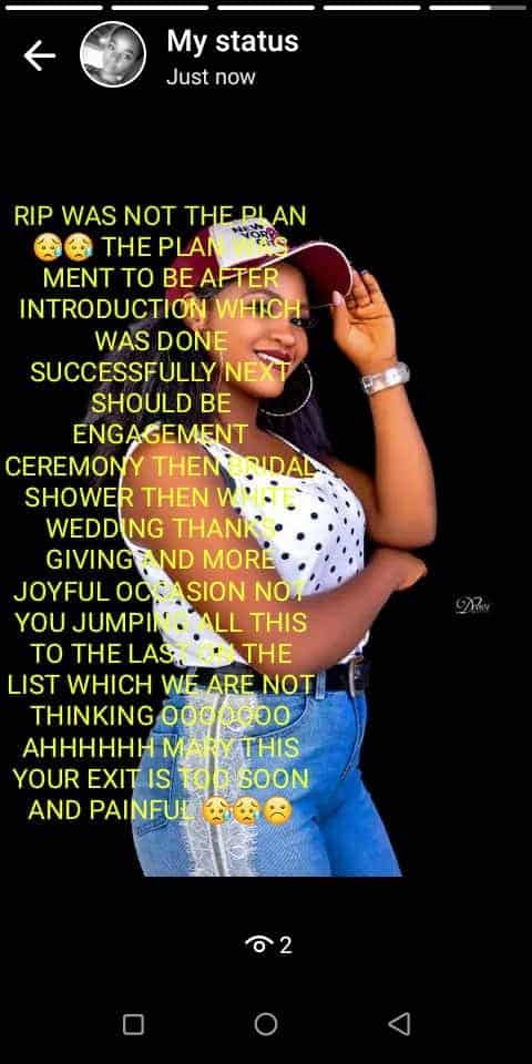 Umukobwa wari ugiye gushyingirwa mu minsi mike iri imbere byamenyekanye ko yitabye Imana nyuma y’amezi abiri bamwambitse impeta.Uyu mukobwa uzwi nka Mary Hananiah wo muri Nigeria biravugwa ko yitabye Imana arimo kwitegura gukora ubukwe.
