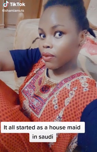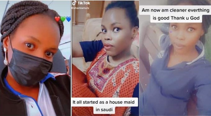 Umugore wishimye yishimiye iterambere rye aho yaretse kuba umukozi wo murugo kugeza akora akazi ko gukora isuku muri Qatar.