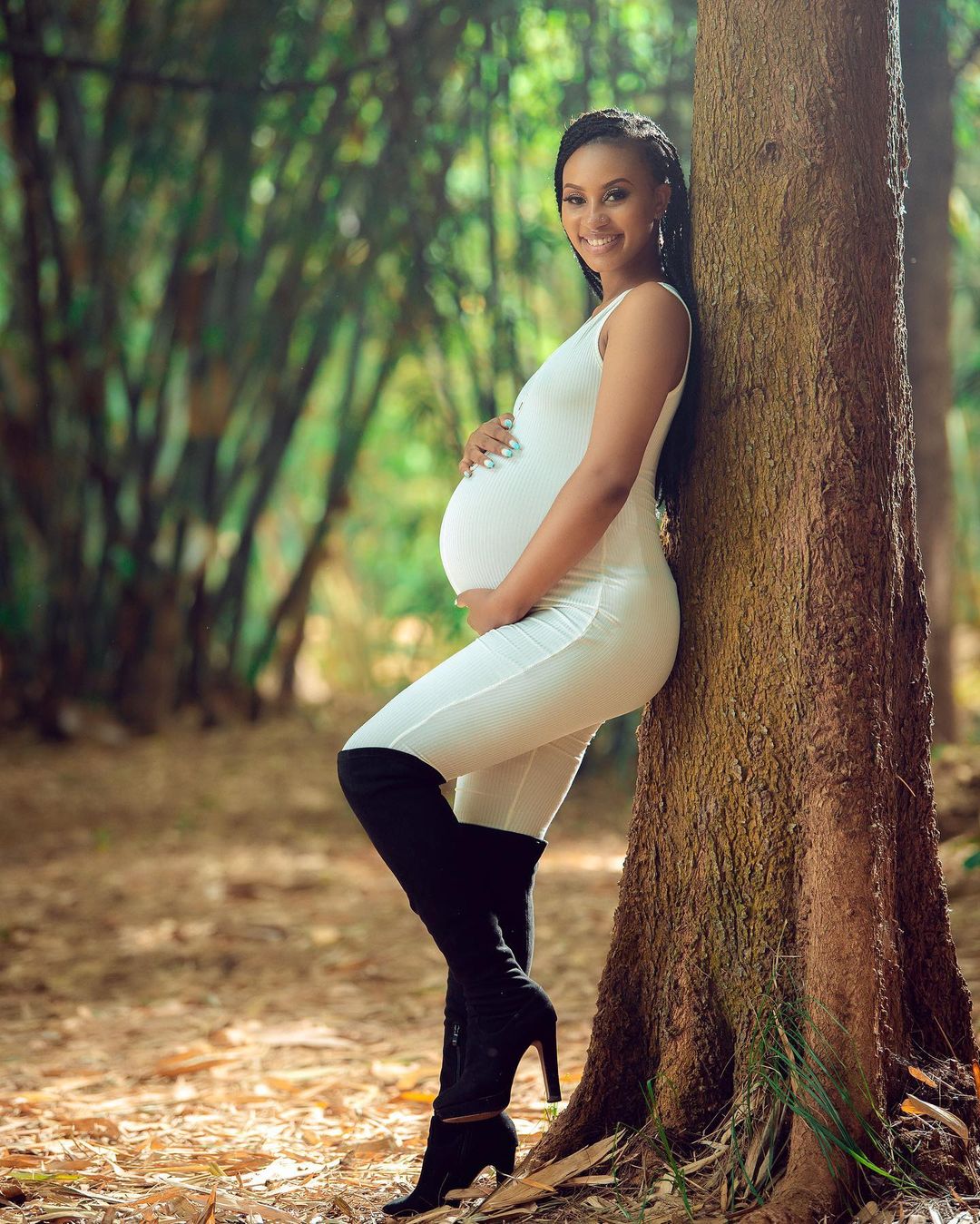 Abinyujije ku rukuta rwe rwa Instagram, Lea yasohoye amafoto ye atwite ubona ko ari hafi kwibaruka.