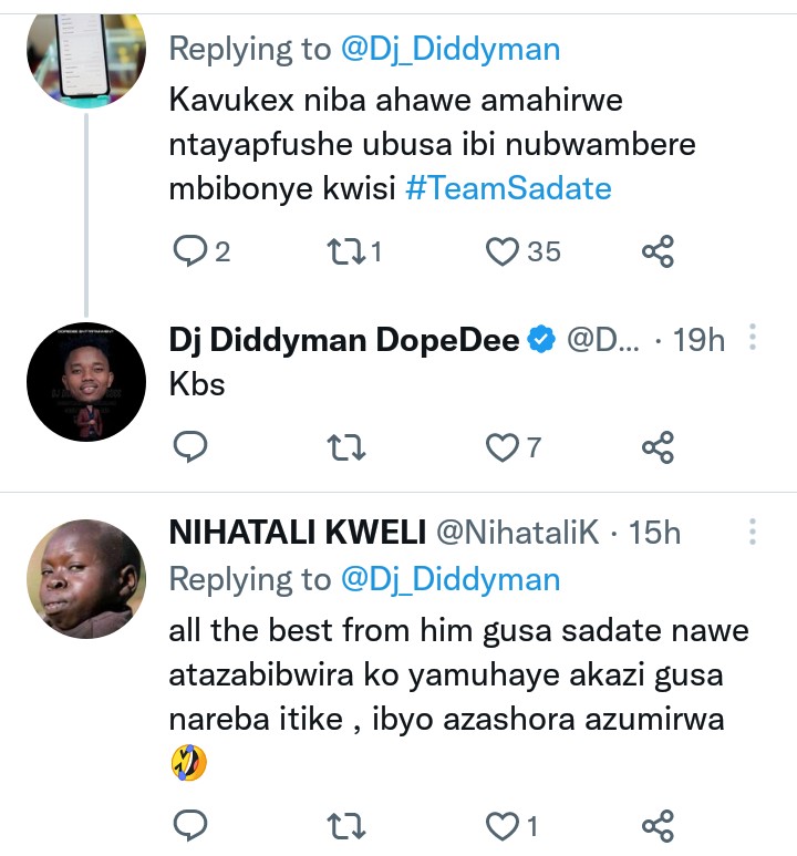 Mu gitondo cyo ku wa Gatatu tariki 22 Gashyantare 2023 nibwo munyakazi sadate yanditse ku rukuta rwe rwa Twitter asaba Imana ko yaza kumufasha mu kazi ke ndetse akaba yifuza ko yazaba umwe mu ba miriyoneli bo muri Afrika.