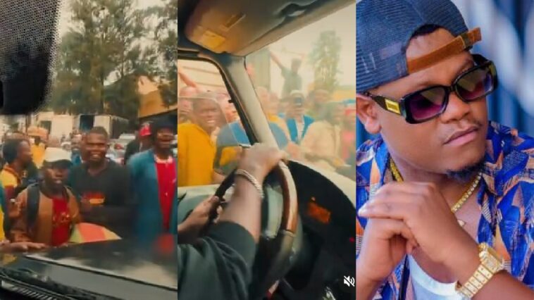 Uyu ni we muhanzi w’abakarani! Abakarani bo mugi babujije imodoka ya Bruce Melodie gutambuka kubera urukundo bamukunda (VIDEWO)
