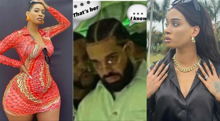 Mu mafoto yashyiho harimo iy’umuhanzi w’icyamamare ku isi Drake ari kumwe n’undi musore wamubazaga umukobwa ari kureba maze akamubwira ko baziranye.