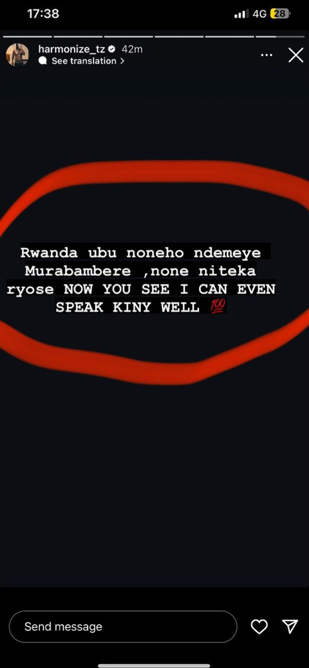 Abinyujije kurukuta rwe rwa Instagram ahashirwa ubutumwa bumara amasaha 24 yashyizeho amagambo ari mu rurimi rw’ikinyarwanda yanditse neza.