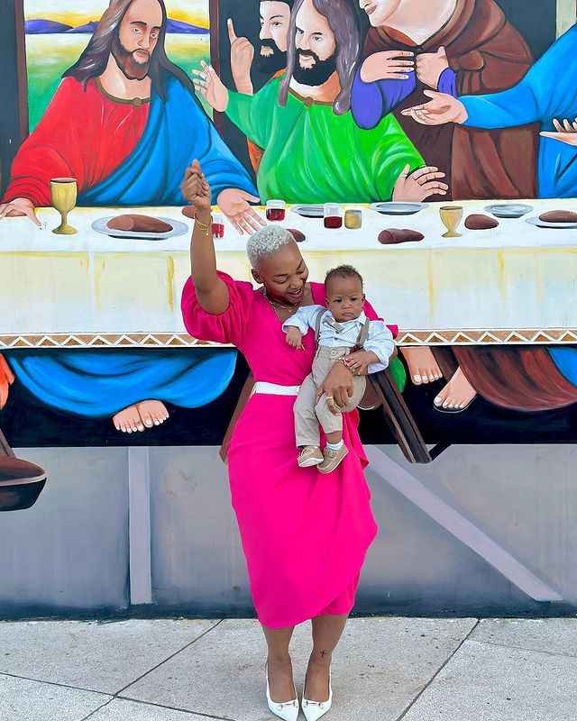 Abinyujije ku rukuta rwe rwa Instagram, Kajala Farida yasohoye amafoto ateruye umwana bari mu Kiriziya.