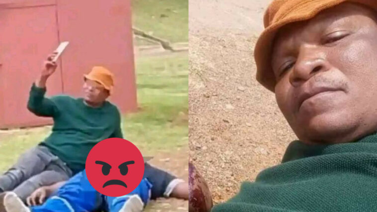 Nyuma yo kumwica uyu mugabo yahise afata telefone atangira kwifotoreza ku murambo wa Nyakwigendera.