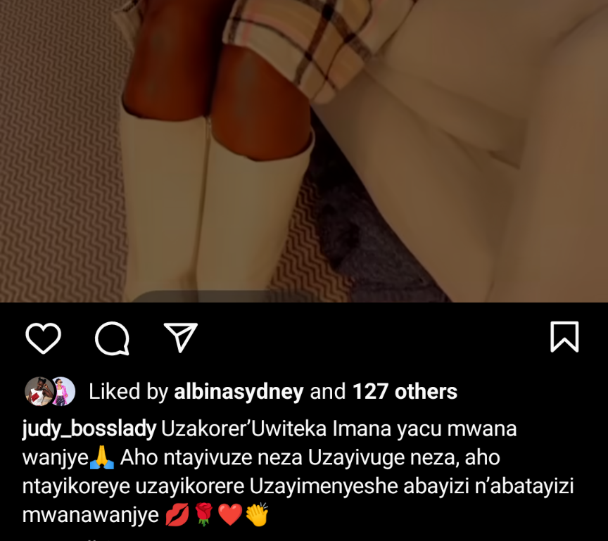 Umuherwekazi Niyonizera Judithe uzwi nka Judy The Boss Lady wahoze ari umugore w’umuhanzi Safi Madiba nyuma akaza gutandukana nawe agashakana n’umuzungu yifashishije imbuga nkoranyambaga ze yasangije abakunzi be amashusho yizihiwe cyane ari kumwe n’umwana we aherutse kwibaruka maze munsi yandikaho amagambo yuje ubwuzu.