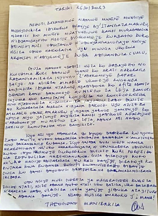 Nyuma y’uko urukiko rwanzuye ko Umunyamakuru Manirakiza Théogène afungwa iminsi 30 y’agateganyo, uyu munyamakuru yasize urwandiko ruteye agahinda.